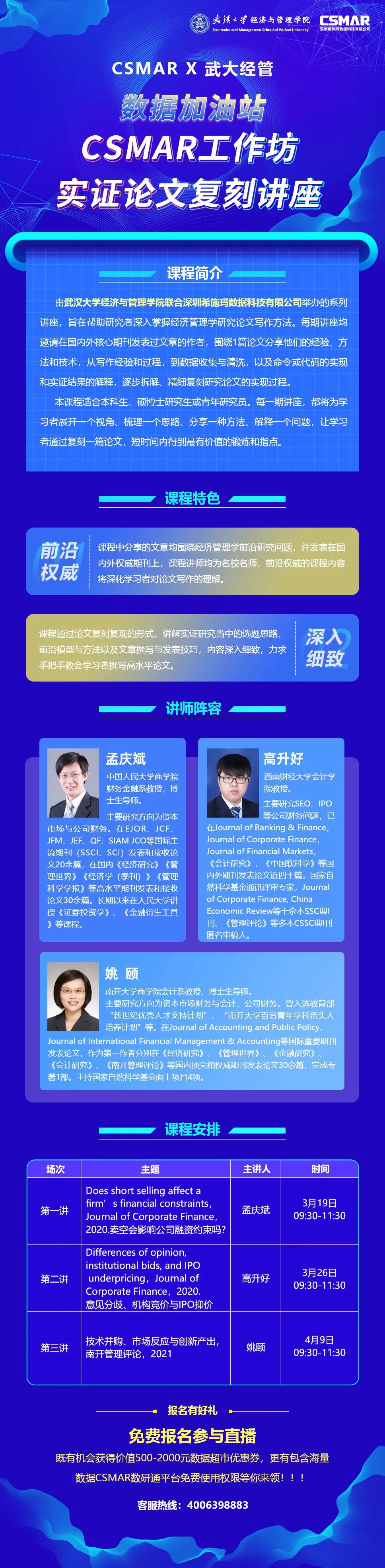 ② 關(guān)注“CSMAR”公眾號(hào)免費(fèi)報(bào)名:后臺(tái)回復(fù)“講座報(bào)名”即可。