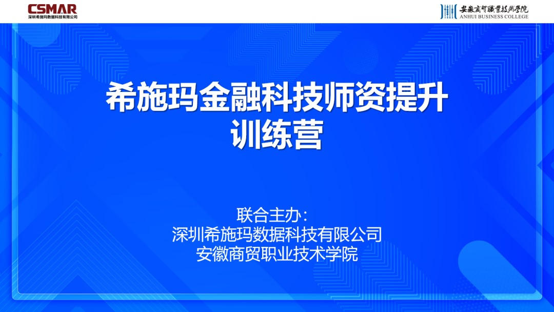 為貫徹《關(guān)于實施職業(yè)院校教師素質(zhì)提高計劃(2021—2025年)的通知》 (教師函〔2021〕6號)的指導(dǎo)精神,幫助院校提高金融科技相關(guān)專業(yè)教學(xué)能力,打造既懂金融又懂科技、能夠滿足教學(xué)需求的專業(yè)師資教學(xué)團隊,深圳希施瑪數(shù)據(jù)科技有限公司(下稱“希施瑪”)聯(lián)合安徽商貿(mào)職業(yè)技術(shù)學(xué)院在2022年5月10日-12日開展為期三天的”希施瑪金融科技師資提升訓(xùn)練營”線上培訓(xùn)課程活動。